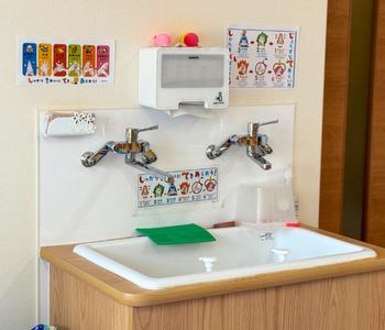 そこでさくらんぼ幼児園では、子どもにもわかりやすい手洗いポスターを見やすい場所に貼り、手のひらや指の間、爪の先までしっかり洗う方法を楽しみながら覚えられる工夫も💡