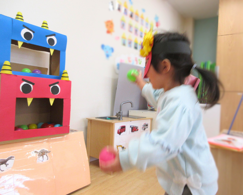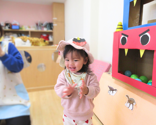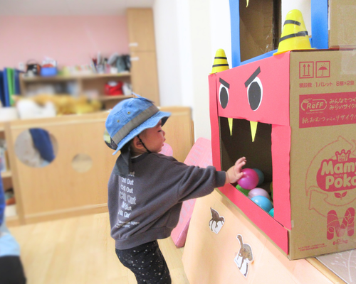 「おにはそと~!」「ふくはうち~!」と元気な声で豆まき(ボール投げ)をして鬼退治完了✅